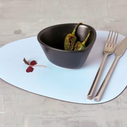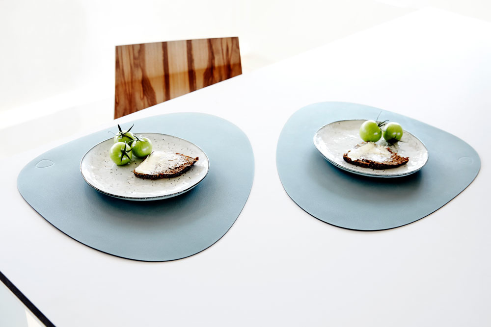 De placemats hebben een lekker fors formaat. Zo heb je geen onderzetters voor je glazen nodig en ook het bestek leg je erop. De Curve vorige placemats zijn in enkel leer te bestellen én in dubbelzijdig leer (met twee kleuren, om eens af te wisselen).