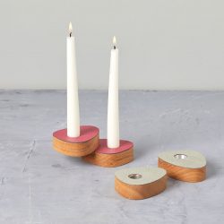 Maak het helemaal af met de magnetische kandelaars. Los op tafel, of op elkaar gestapeld. De kandelaars zijn handgemaakt van eiken en met leer afgewerkt.