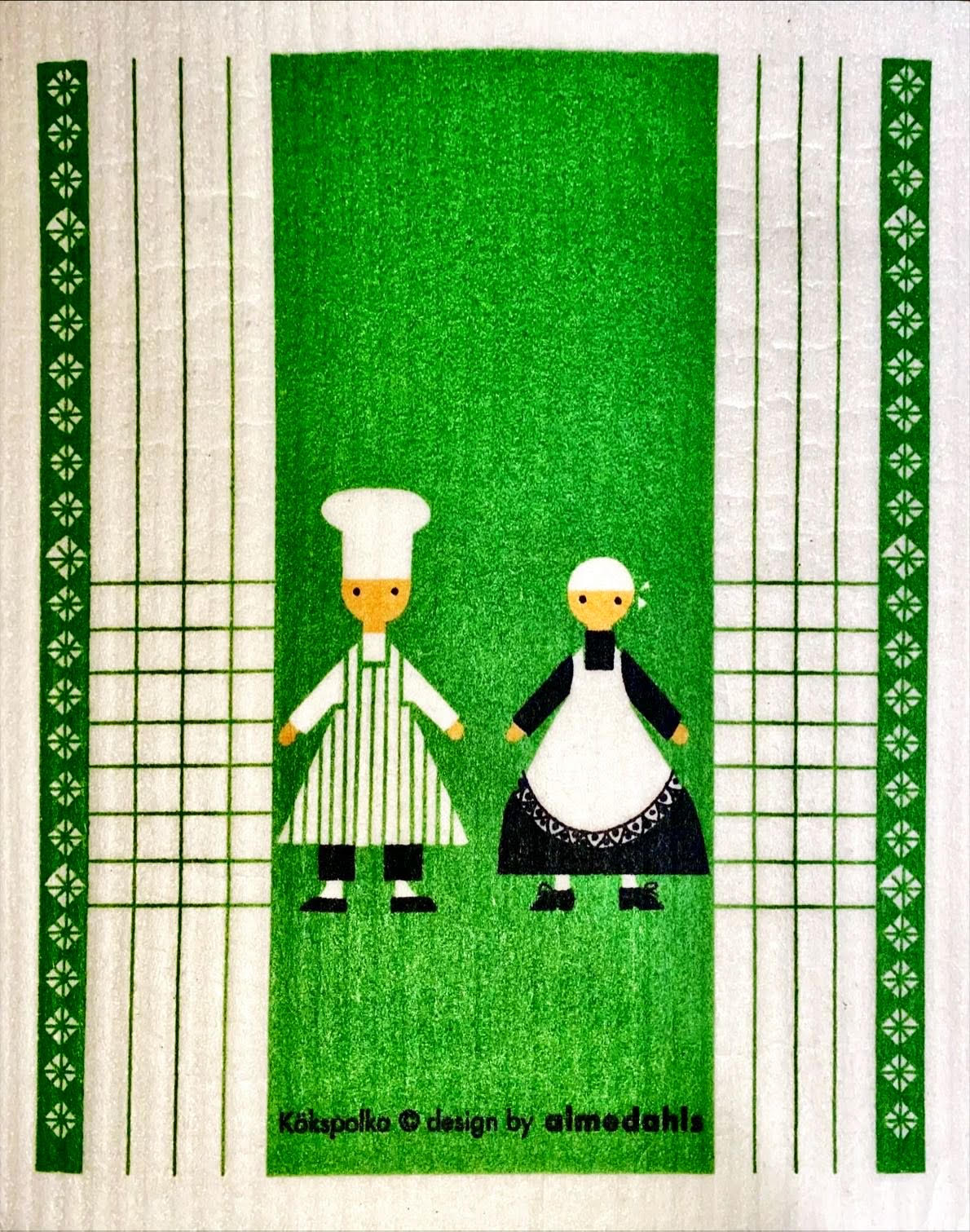 Het Almedahls vaatdoekje met de opdruk van de kokspolka in het groen. Deze vaatdoek absorbeert tot wel 15 maal het eigen gewicht. Ideaal voor in de keuken en eenmaal in gebruik? Dan valt deze vaatdoek bijna niet meer in de keuken te missen!