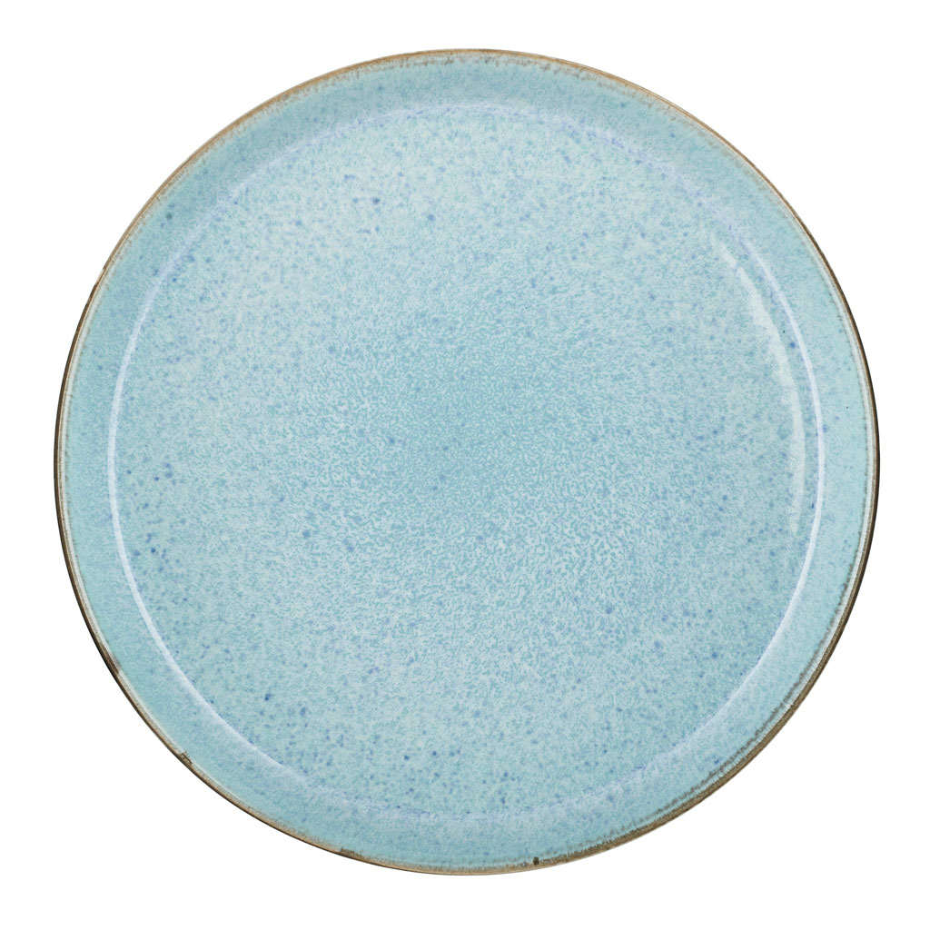 Aardewerk bord van het Deense merk Bitz. Met mat zwarte onderzijde/rand en geglazuurde binnenkant in nordic kleur grijs/lichtblauw.