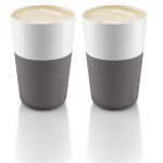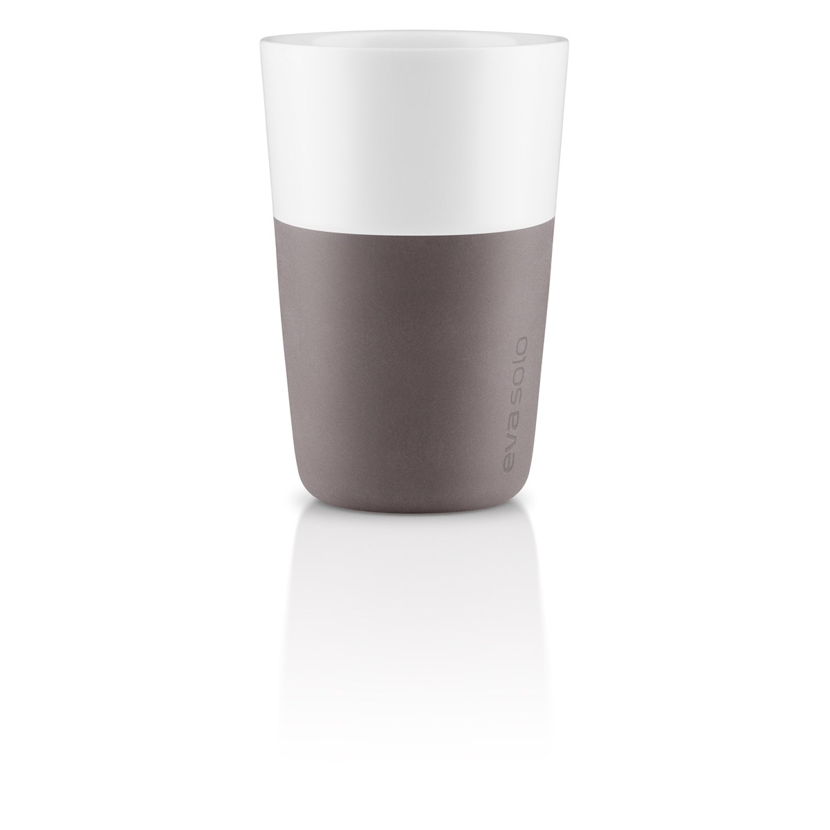 De latte-tumbler van Eva Solo bevat 360 ml koffie, wat precies overeenkomt met de standaardinstellingen van veel van de populaire podkoffiemachines. De beker is gemaakt van porselein met een siliconen omhulsel, wat zorgt voor een goede grip en tegelijkertijd verbrande vingers voorkomt. Deze is vaatwasmachinebestendig; de siliconen mantel moet echter worden verwijderd voordat beide onderdelen in de vaatwasmachine worden geplaatst.