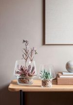 Breng vitaliteit en leven in huis met groene planten in sculpturale vormen. Met de succulente glazen vaas kun je je eigen planten terrarium kweken. De glazen vaas is speciaal ontworpen voor het kweken van de populaire vetplanten die met hun dikke vlezige stengels en bladeren een vleugje weelderigheid toevoegen. Naast het toevoegen van een groen element aan uw huis, stimuleert het planten terrarium ook rustige reflectie en ontspanning. De winterharde, onderhoudsarme planten gedijen goed in de glazen vaas en het is goed te zien wanneer ze water nodig hebben. De vaas kan ook gebruikt worden als vaas voor snijbloemen. H18cm
