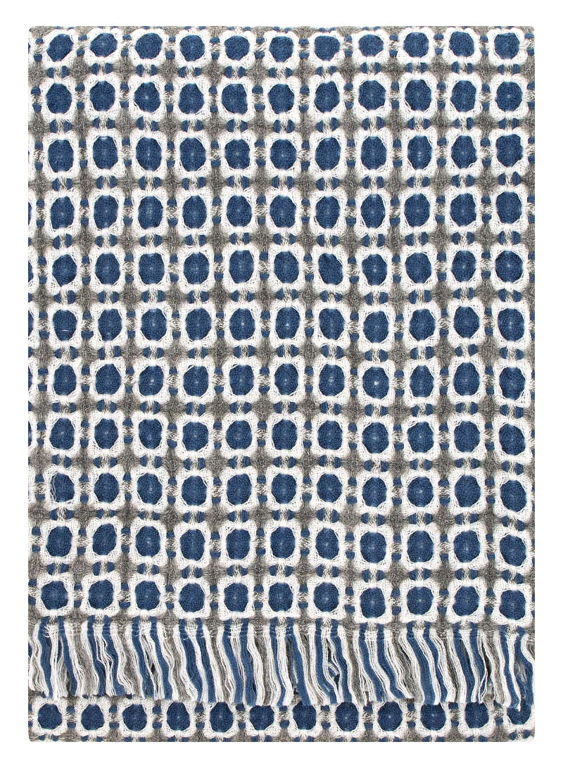 Mooie wollen deken in Scandinavische kleurencombi blauw/grijs. Formaat 130 x 170 cm. Van het Finse merk Lapuan Kankurit, dat al sinds 1917 wollen dekens maakt!