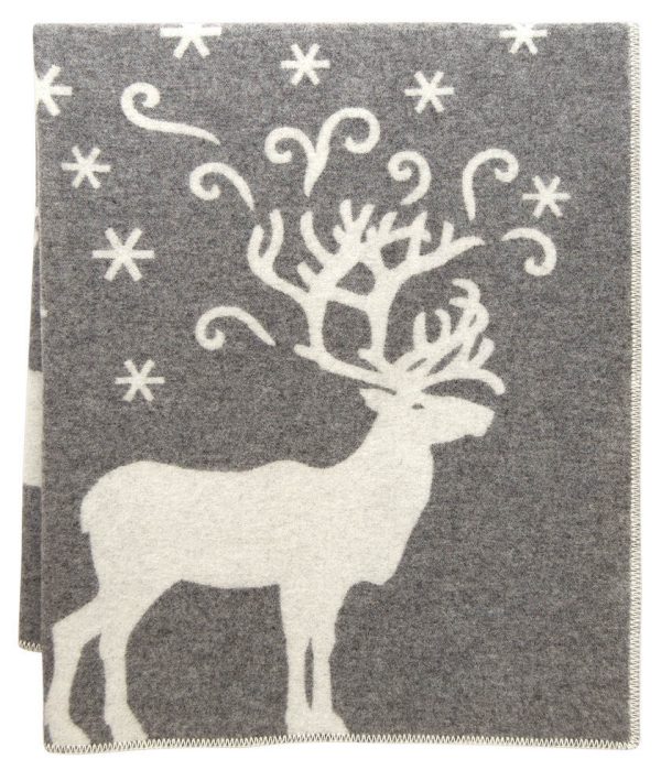 Wollen dekens geven een warme uitstraling aan je interieur. Met deze Valkko plaid met rendier afbeelding haal je de Finse natuur in huis. Tweezijdig te gebruiken. 100% pure wol, 130 x 180 cm.