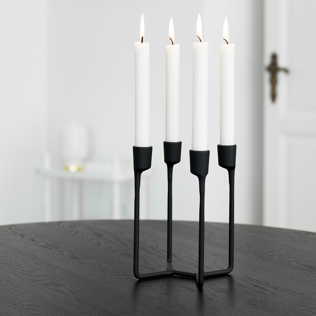 Heima is een vierarmige gietijzeren kandelaar met een minimalistisch, Scandinavisch design. Deze prachtige kandelaar met een herkenbaar ontwerp is een eerbetoon aan het vakmanschap en de Scandinavische tradities. Het ruwe, bijna koude oppervlak geeft de kandelaar een Heima karakter, terwijl de afgeronde vormen samen een modern ontwerp vormen.