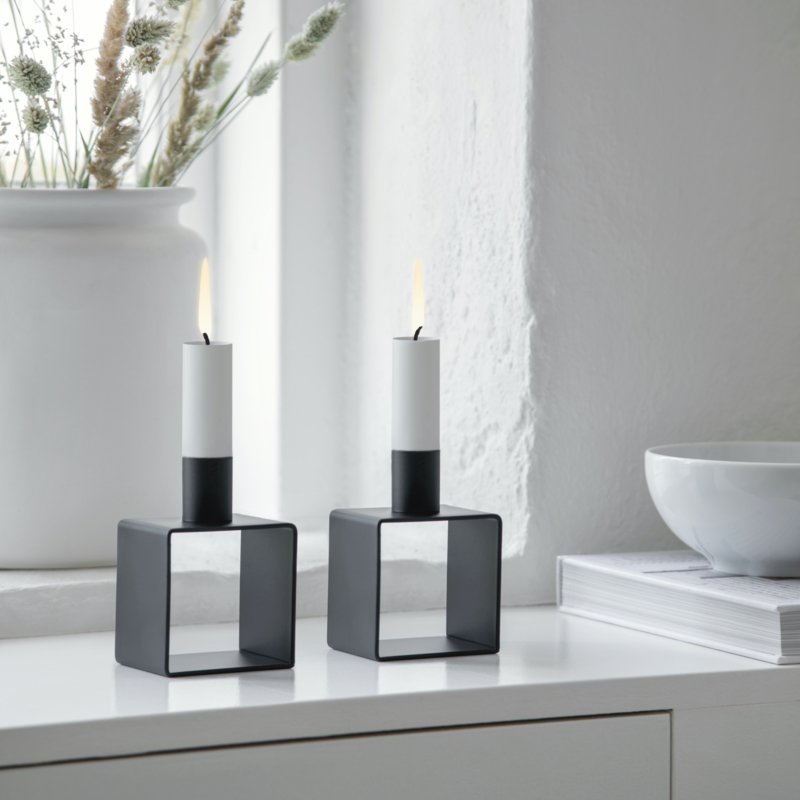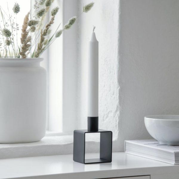 Prachtige kandelaar uit de ‘Frame Serie’ waarbij de ontwerper een serie kandelaars heeft gecreëerd met een zeer minimalistische en Nordic expressie. Alle overbodige zaken zijn weggelaten en wat overblijft is een eenvoudig frame dat kaars draagt. Daarbij zet het frame de kaarsen preachtig neer zonder daarbij de focus van de kaarsen weg te nemen!