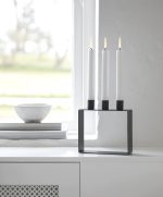 Prachtige kandelaar uit de ‘Frame Serie’ waarbij de ontwerper een serie kandelaars heeft gecreëerd met een zeer minimalistische en Nordic expressie. Alle overbodige zaken zijn weggelaten en wat overblijft is een eenvoudig frame dat de 3 kandelaars draagt. Daarbij zet het frame de kaarsen preachtig neer zonder daarbij de focus van de kaarsen weg te nemen!