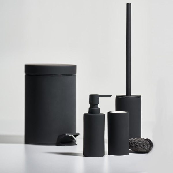 - past perfect bij de badkamer accessoires van Zone Denmark, zoals de pedaalemmer, zeepdispenser en toiletborstel